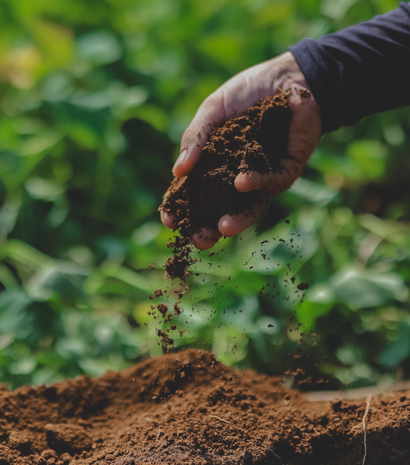 (01)畑ごとの特性を見極め、経験とデータに基づいて肥料や資材を設計。有機物を取り入れた肥料は毎年試験を重ね、前作の出来に合わせて最適な組み合わせを選定しています。定期的な土壌分析で調整を行い、さつまいも本来の味わいと力を引き出します。